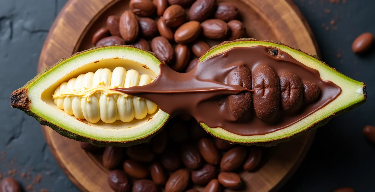 Cet article vous invite à un voyage au cœur de cette transformation. Nous allons déconstruire les mythes et explorer comment le terroir, la fermentation, la torréfaction et l’assemblage sont les véritables artisans du goût. Vous découvrirez pourquoi comparer un chocolat artisanal à une tablette industrielle est une erreur fondamentale et comment, même dans votre cuisine, la maîtrise de gestes simples peut préserver l’intégrité de cette matière première si précieuse.